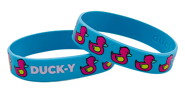 DUCK-Y OG Logo Blue and Red Silicone Bracelet.