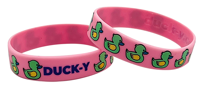 DUCK-Y OG Logo Pink and Green Silicone Bracelet.