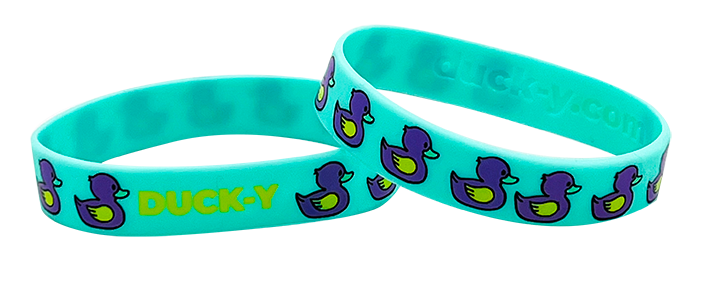 DUCK-Y OG Logo Teal and Purple Silicone Bracelet.