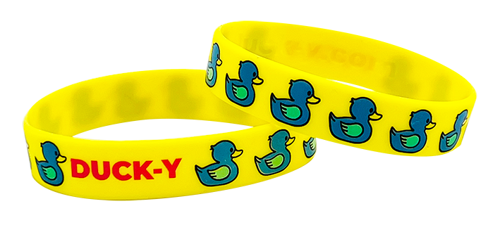 DUCK-Y OG Logo Yellow and Blue Silicone Bracelet.