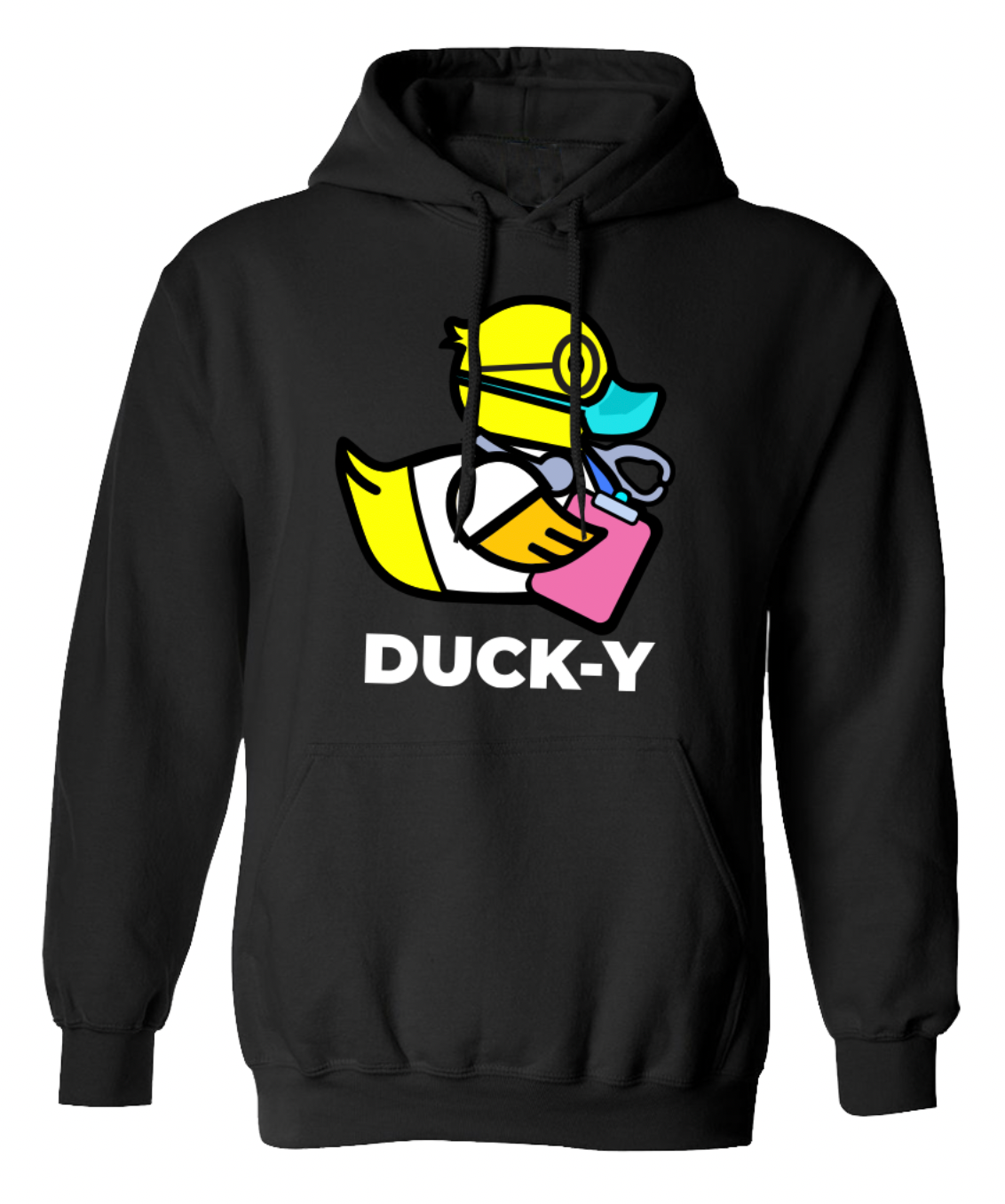 Get a dose of style with the Doctor DUCK-Y Hoodie! Featuring a cheerful duck in a white coat, stethoscope, and head mirror, this playful design adds a fun, medical twist to your wardrobe. Whether you’re in healthcare or just love a good novelty hoodie, this one’s a prescription for cozy cool.