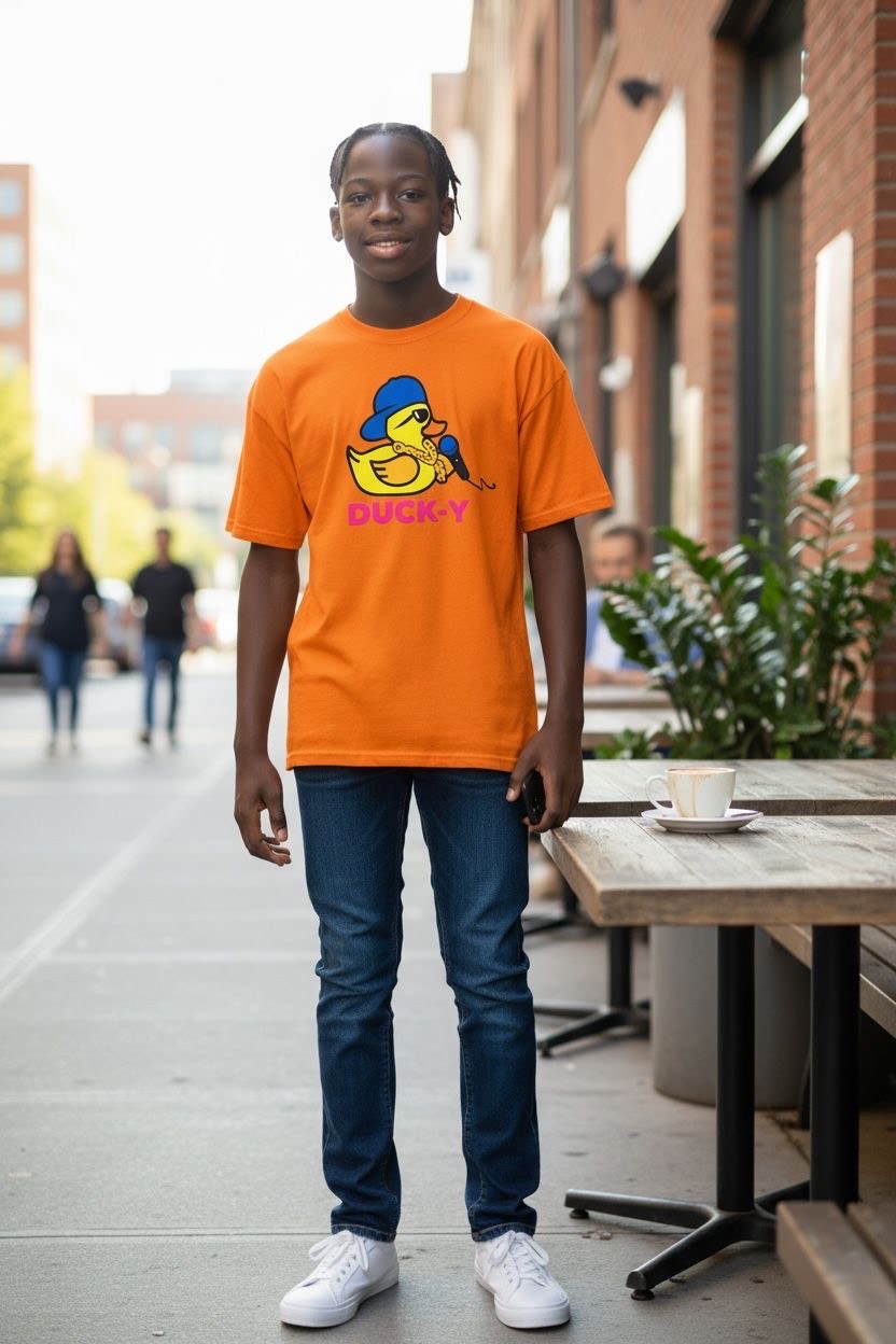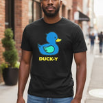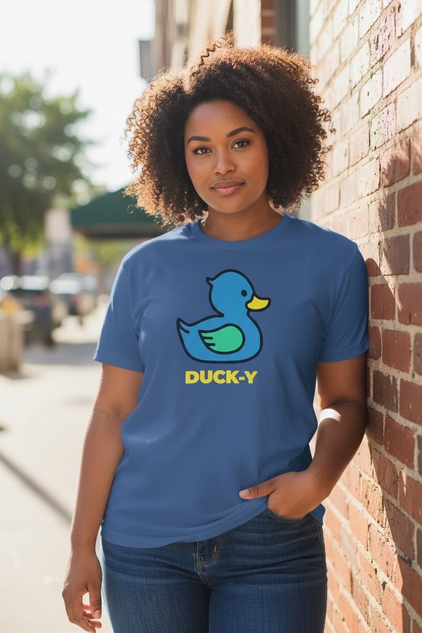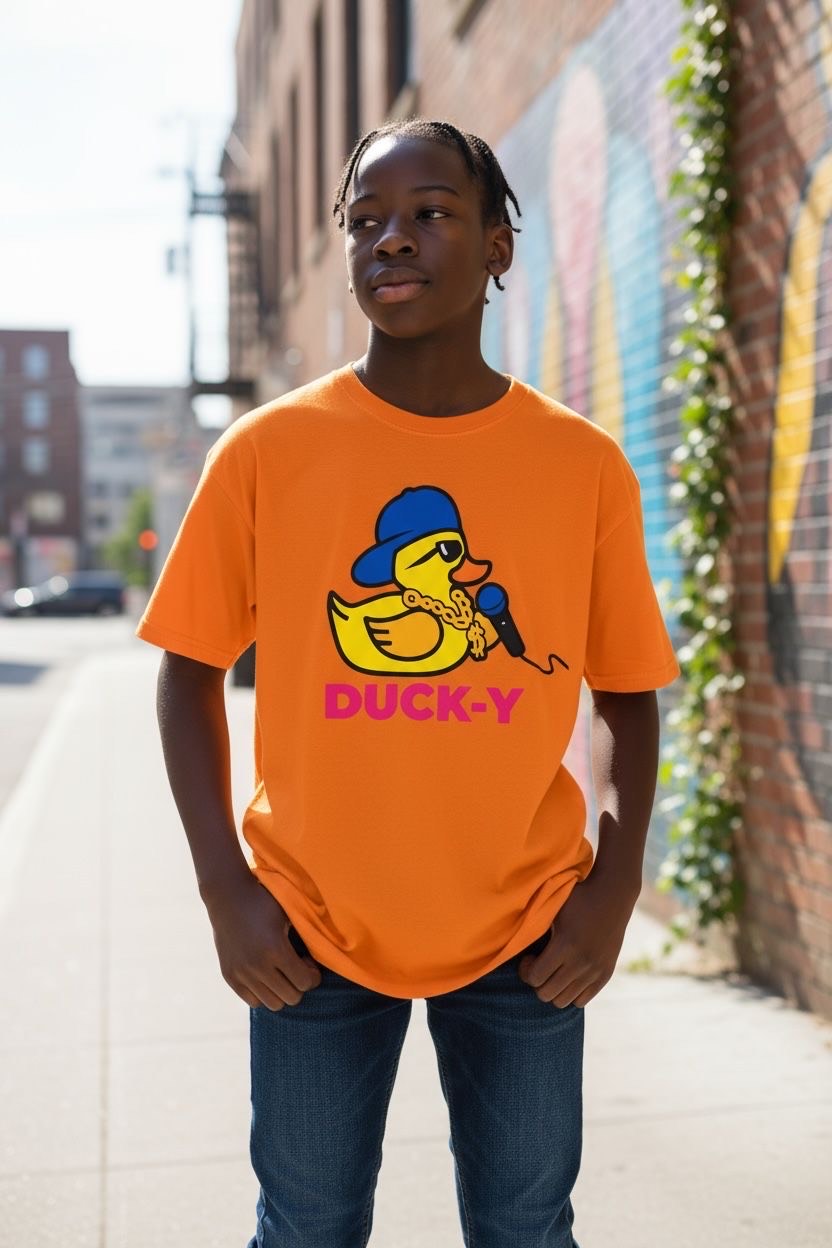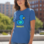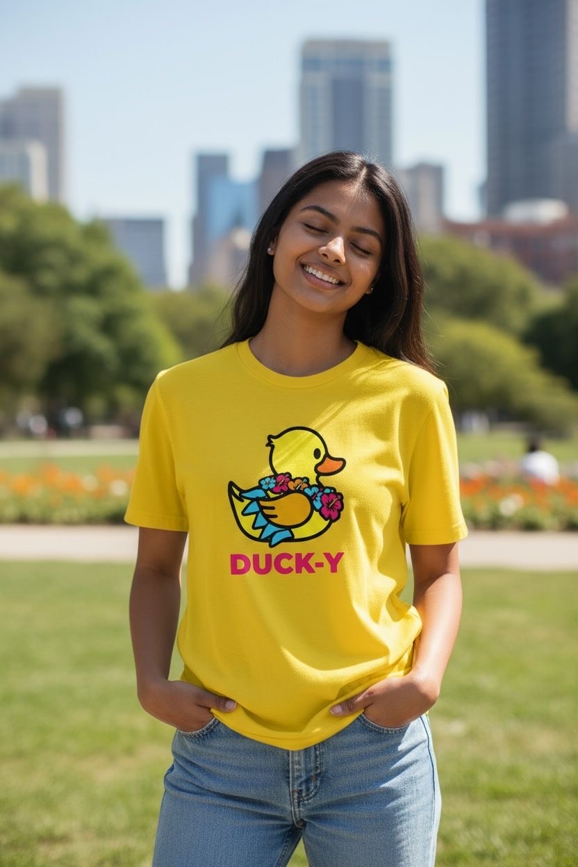 DUCK-Y Unisex T-shirts assorted pack! Comes 48 T-shirts in each box. There are different DUCK-Y characters printed on the T's, assorted colors and sizes are from XS-2XL. Cost is $15 each T-shirt wholesale. Retail is $29.99 each.