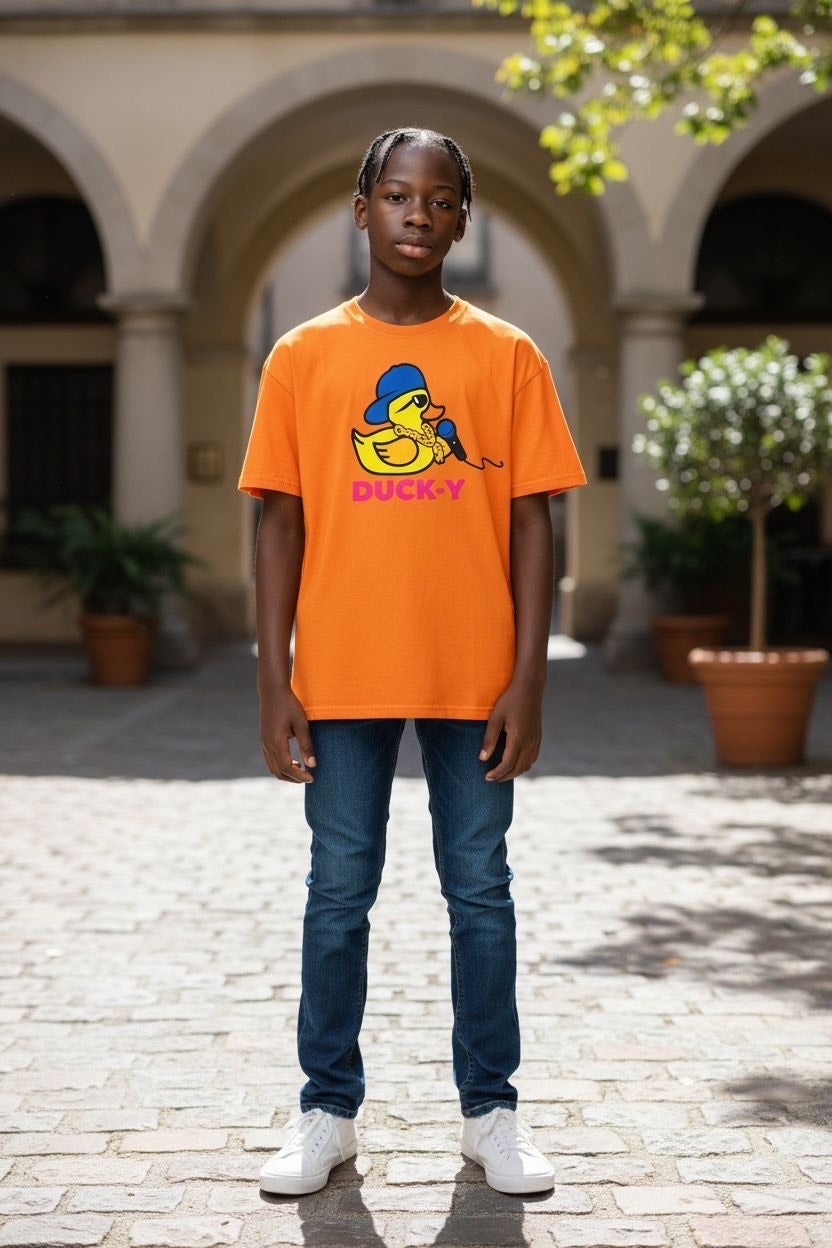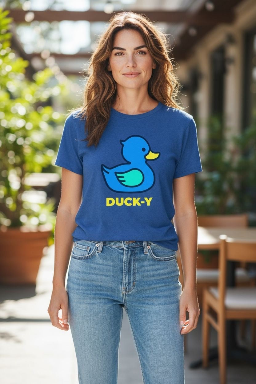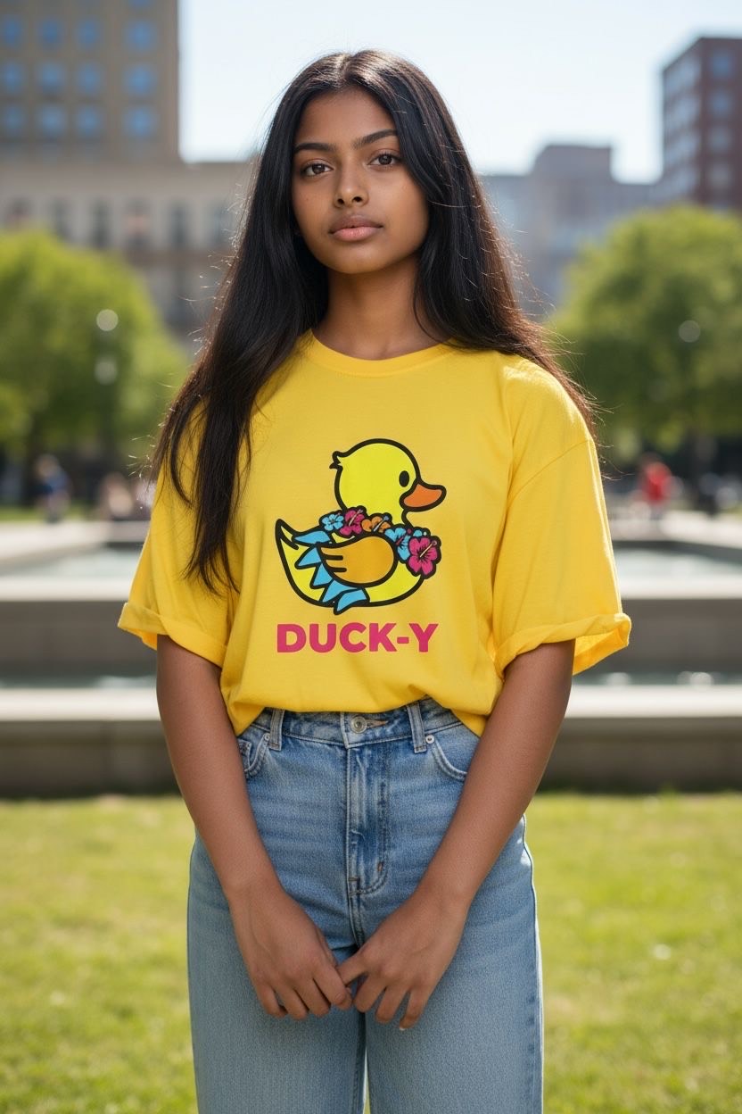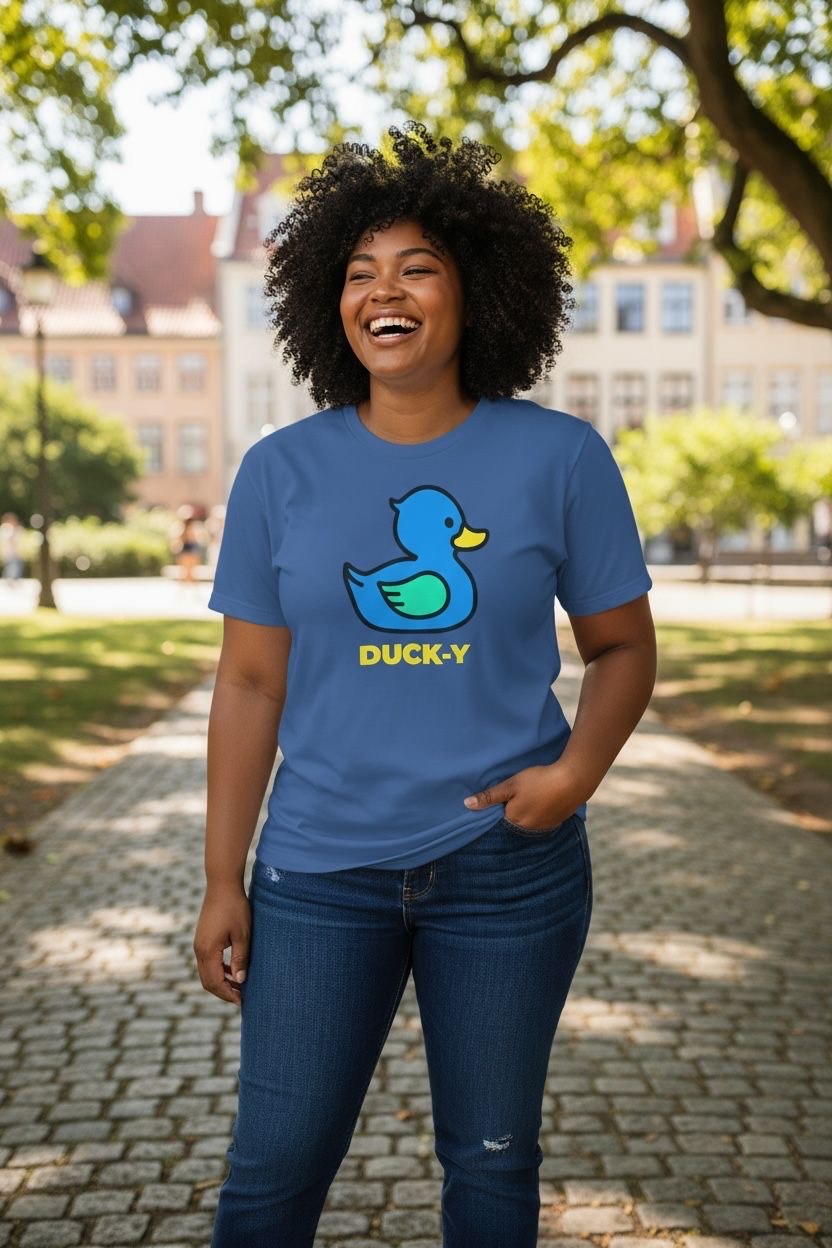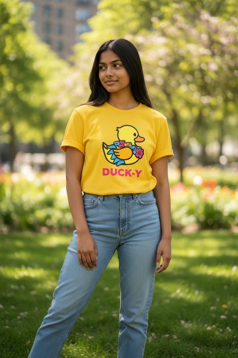 DUCK-Y Unisex T-shirts assorted pack! Comes 48 T-shirts in each box. There are different DUCK-Y characters printed on the T's, assorted colors and sizes are from XS-2XL. Cost is $15 each T-shirt wholesale. Retail is $29.99 each.