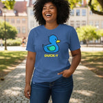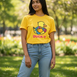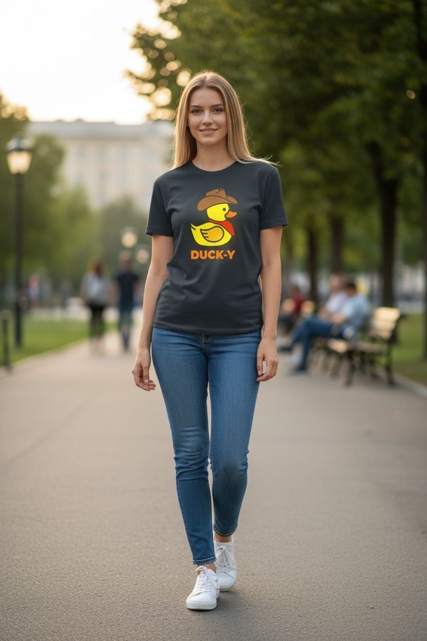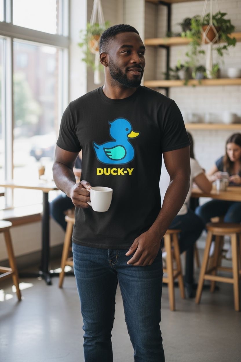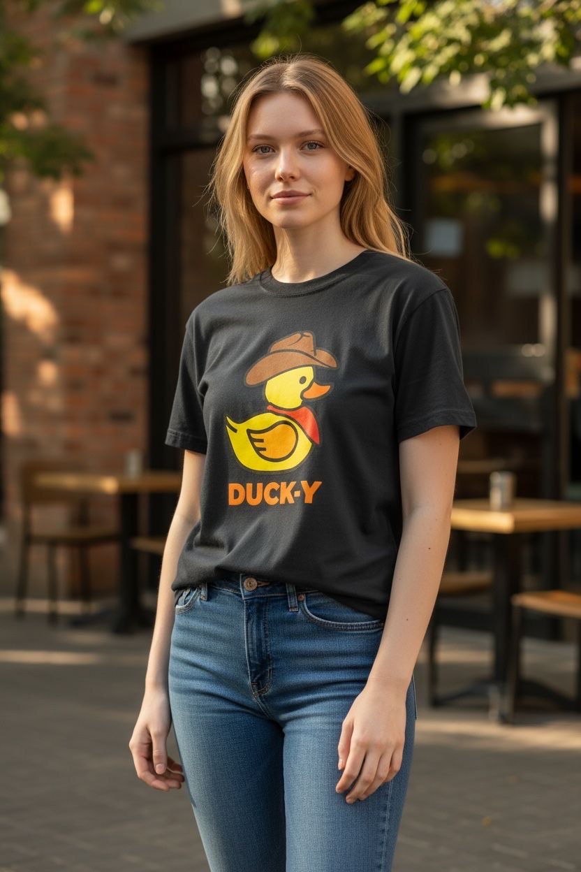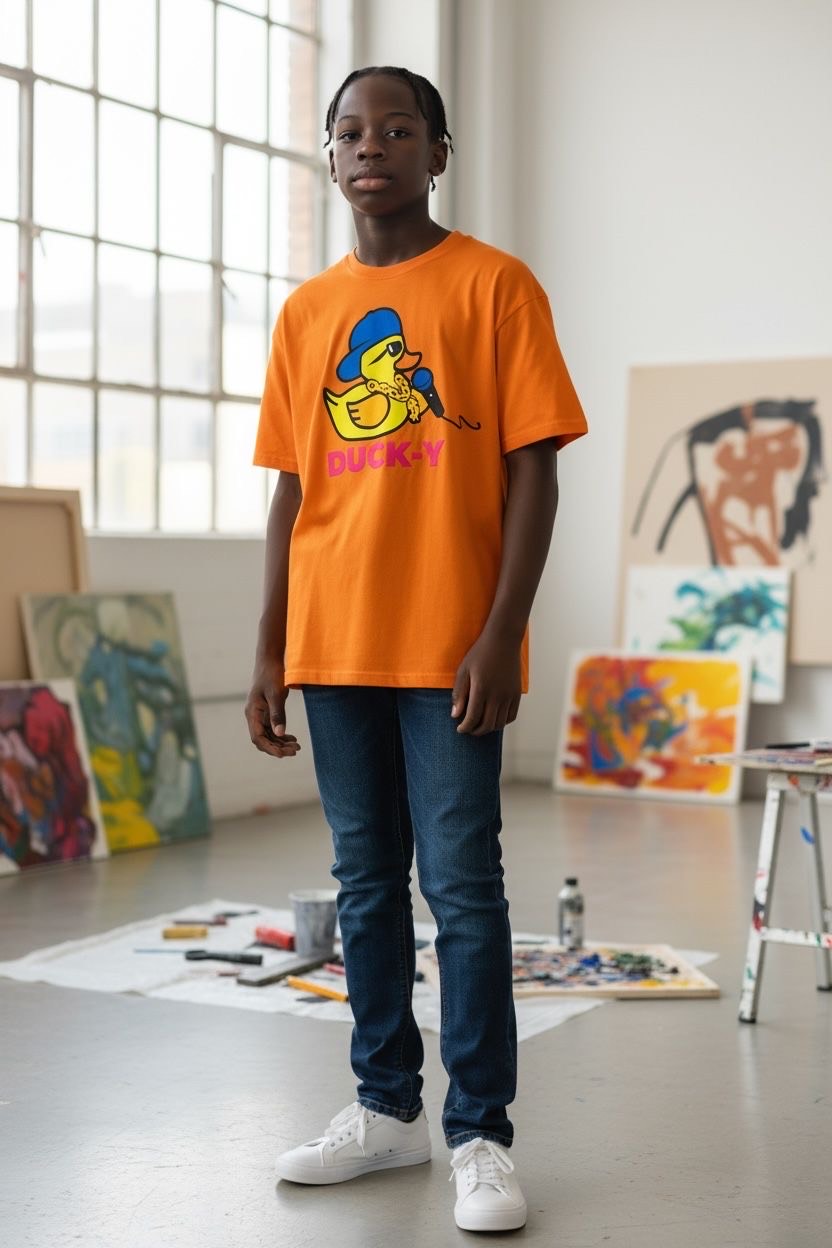 DUCK-Y Unisex T-shirts assorted pack! Comes 48 T-shirts in each box. There are different DUCK-Y characters printed on the T's, assorted colors and sizes are from XS-2XL. Cost is $15 each T-shirt wholesale. Retail is $29.99 each.